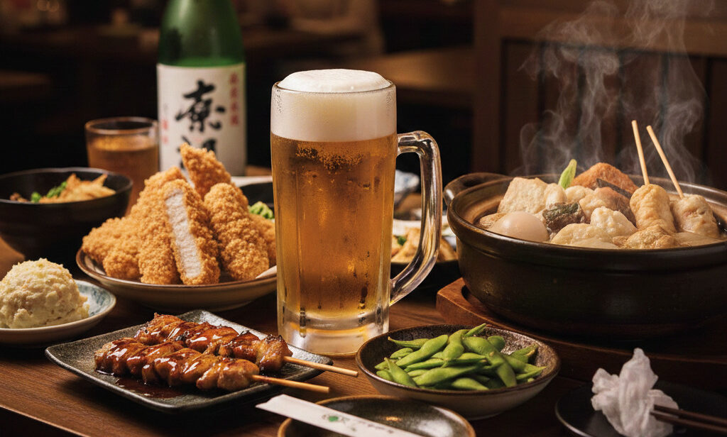 生ビールはもちろん、オリジナルの「よこちゃんサワー」や、お酒好きにはたまらない「出汁割り」など、バラエティ豊かなラインナップ。大人数ならデキャンタでの注文もお得です。